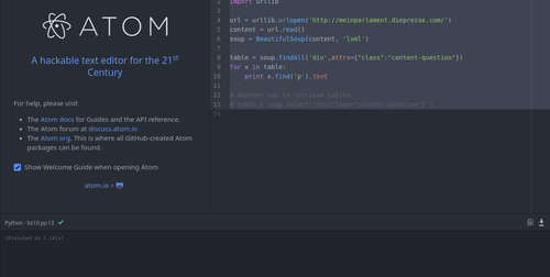 Let us know what about this package looks wrong to you, and we'll investigate right away. This answer is not useful. Save your script as a.py file in a directory. Apr 07, 2020 · writing python scripts in atom and running them within the atom framework is simple and can save a lot of time when it comes to switching between terminal shell commands in windows, installing libraries and creating or managing files and folders. Run your python source file (.py) on windows or linux, using f5 or f6!. To run python scripts in the atom text editor, we need to install the script package. Save your script as a.py file in a directory.